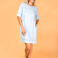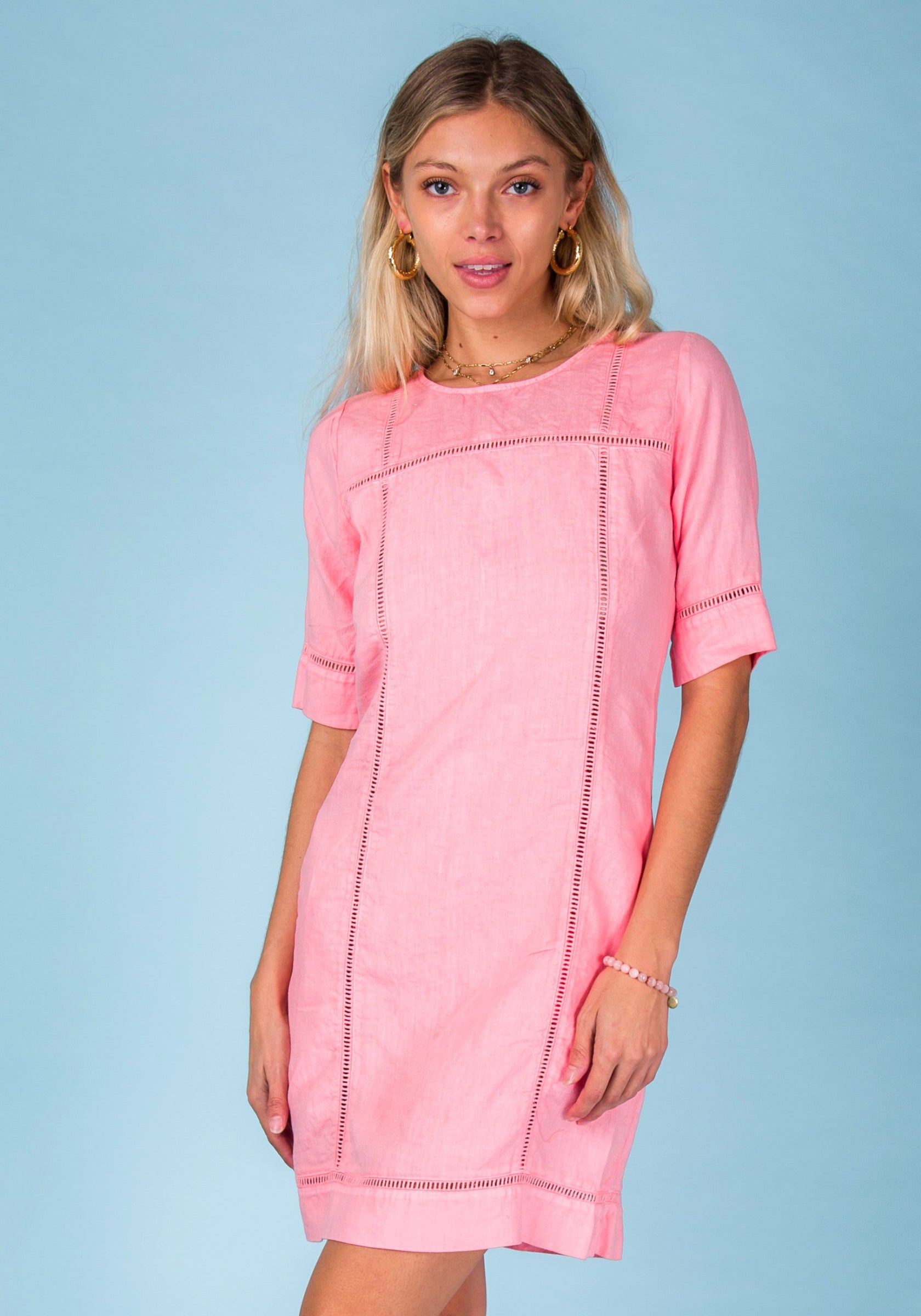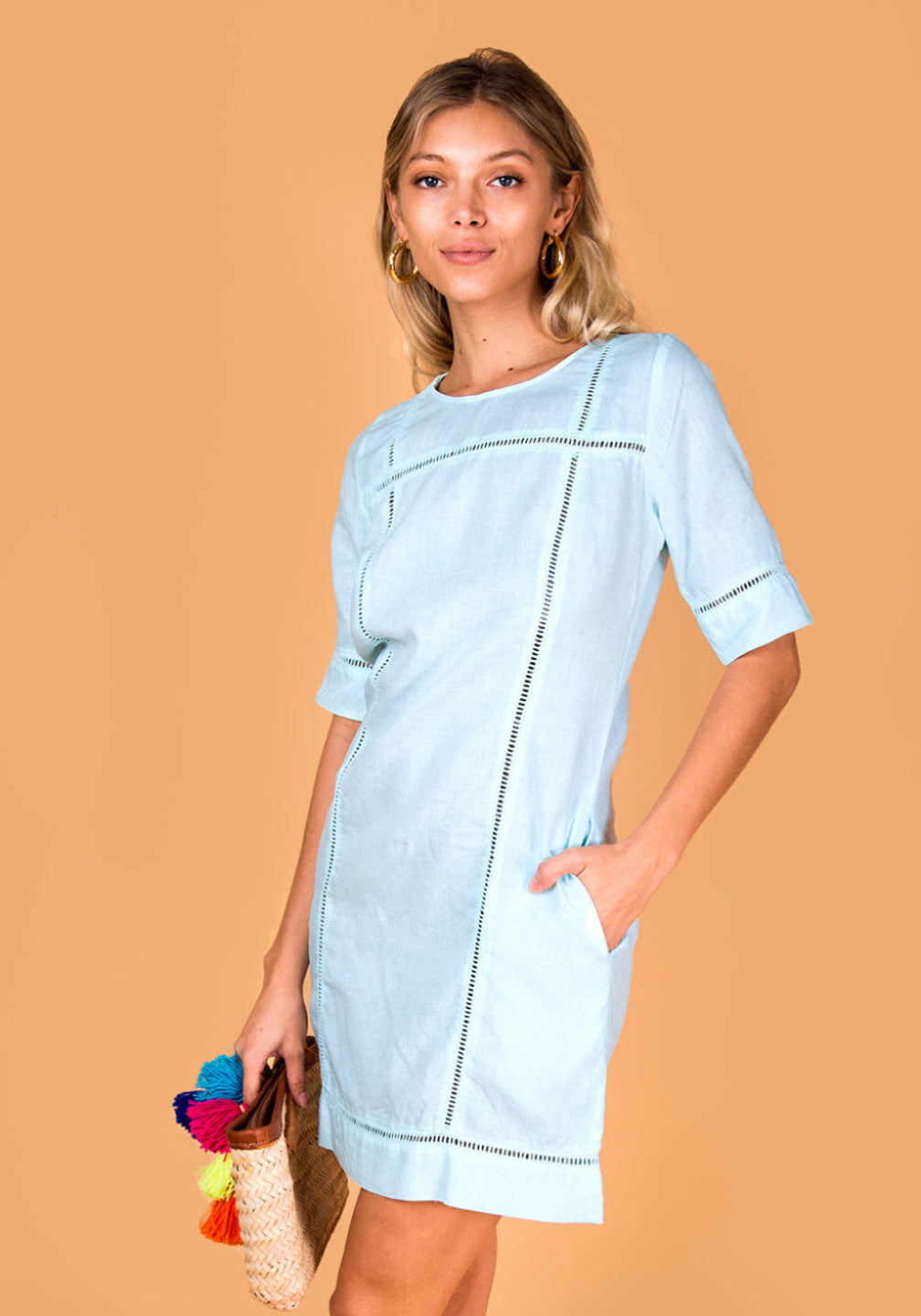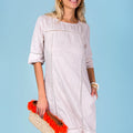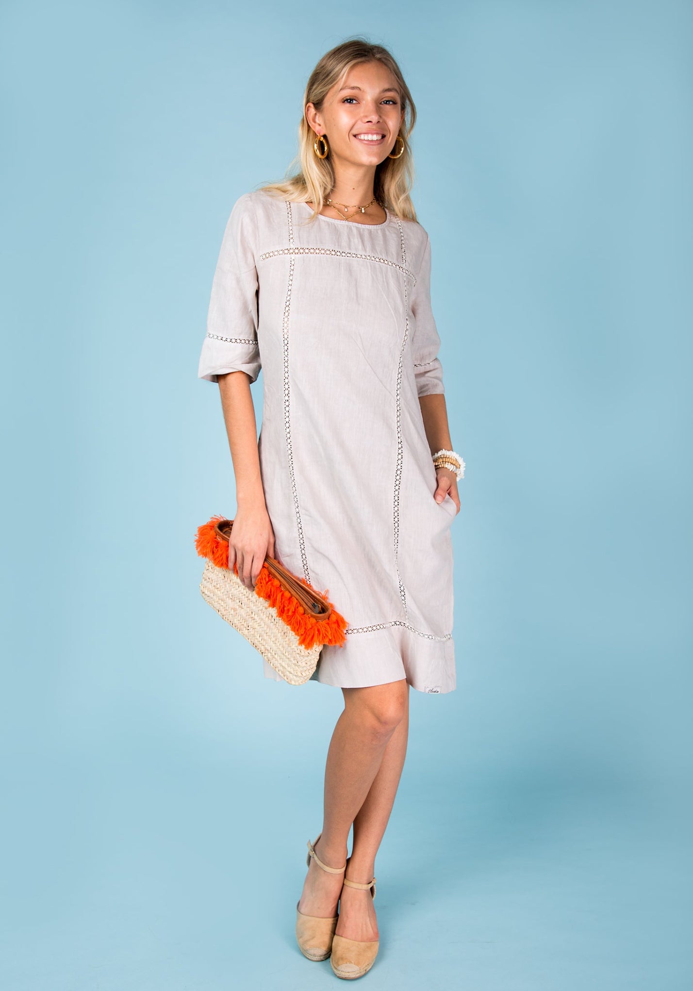 Embrace the effortless charm of this 3/4 Sleeve Linen Dress with lace detail. Designed with the allure of Italian style, this dress is perfect for a day of coastal exploration or an evening stroll through a quaint town. Made from 100% natural linen, it offers a breathable and comfortable fit, ensuring you feel relaxed yet refined. Whether you're visiting a boutique café or catching the sunset on a private terrace, this dress adds a touch of elegance to any adventure.