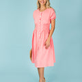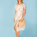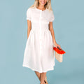 Effortlessly chic, this short-sleeve peasant dress is crafted from 100% natural Italian linen for a breathable, comfortable fit. With a classic button-down design and relaxed silhouette, it offers timeless style perfect for warm weather getaways or casual outings. This dress is a versatile addition to your wardrobe.