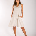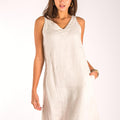 Whether you're sipping cocktails by the beach or exploring charming streets, this V-neck linen dress is your go-to for effortless style. Made from 100% premium linen, it's soft, breathable, and perfect for vacation adventures. The fresh white hue gives you a carefree vibe, while the simple yet flattering design keeps you comfortable all day long. Pack it for your next getaway and embrace laid-back elegance wherever you go!