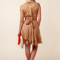 Linen Wrap Dress With Soft Ruffles & Waist Tie