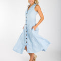 Linen Dress With Coconut Buttons & Mao Collar