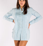 Pleated Button-Down Linen Tunic