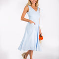 Sleeveless Flare Linen Dress With Belt